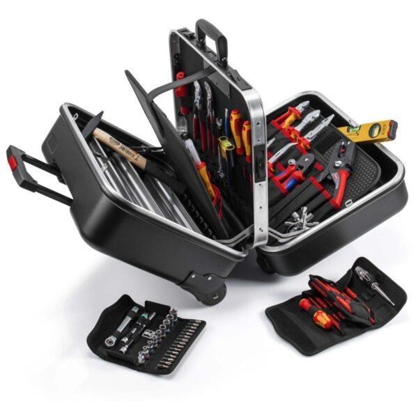 Komplet je opremljen s 14 komada KNIPEX i ukupno 63 komada alata poznatih marki te je prošao djelomično VDE ispitivanje u skladu s normom DIN EN 60900. Ima ukupni izbor od 95 umetaka.